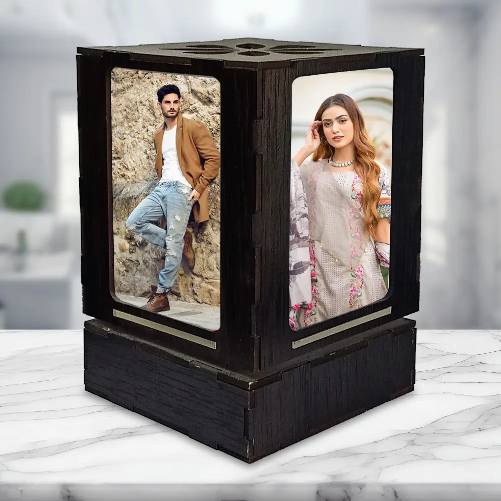 Illuminate your precious memories in the most elegant way with the LED Small Rectangular Rotating Lamp by IGIFTZI — a perfect blend of warmth, creativity, and timeless décor. Crafted from premium MDF wood and featuring high-definition photo prints on four sides, this beautiful lamp transforms your favorite pictures into a revolving display of emotions.