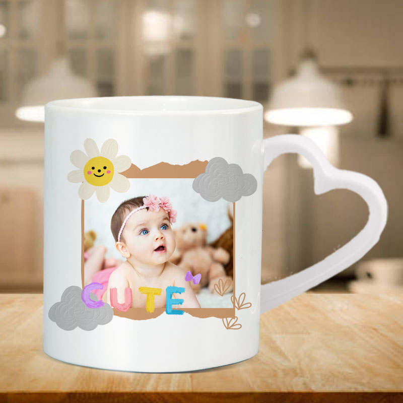 This personalized polymer mug is highly durable, microwave safe, and easy to handle, with a glossy finish that enhances the printed design. Its vibrant print and heart-handle design make it a trending choice for custom printed mugs lovers.