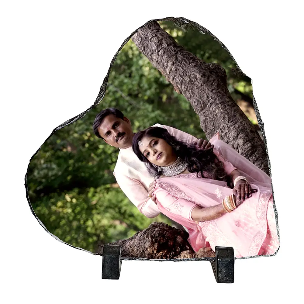 Celebrate your precious memories with the beautifully crafted Rock Frame SH-60 from IGIFTZI. Designed in a charming heart shape, this stunning photo rock frame is the perfect way to express love and warmth through personalized gifting. Made from high-quality natural rock slab, it features a vibrant, high-definition sublimation photo print that captures your favorite moments in stunning detail.