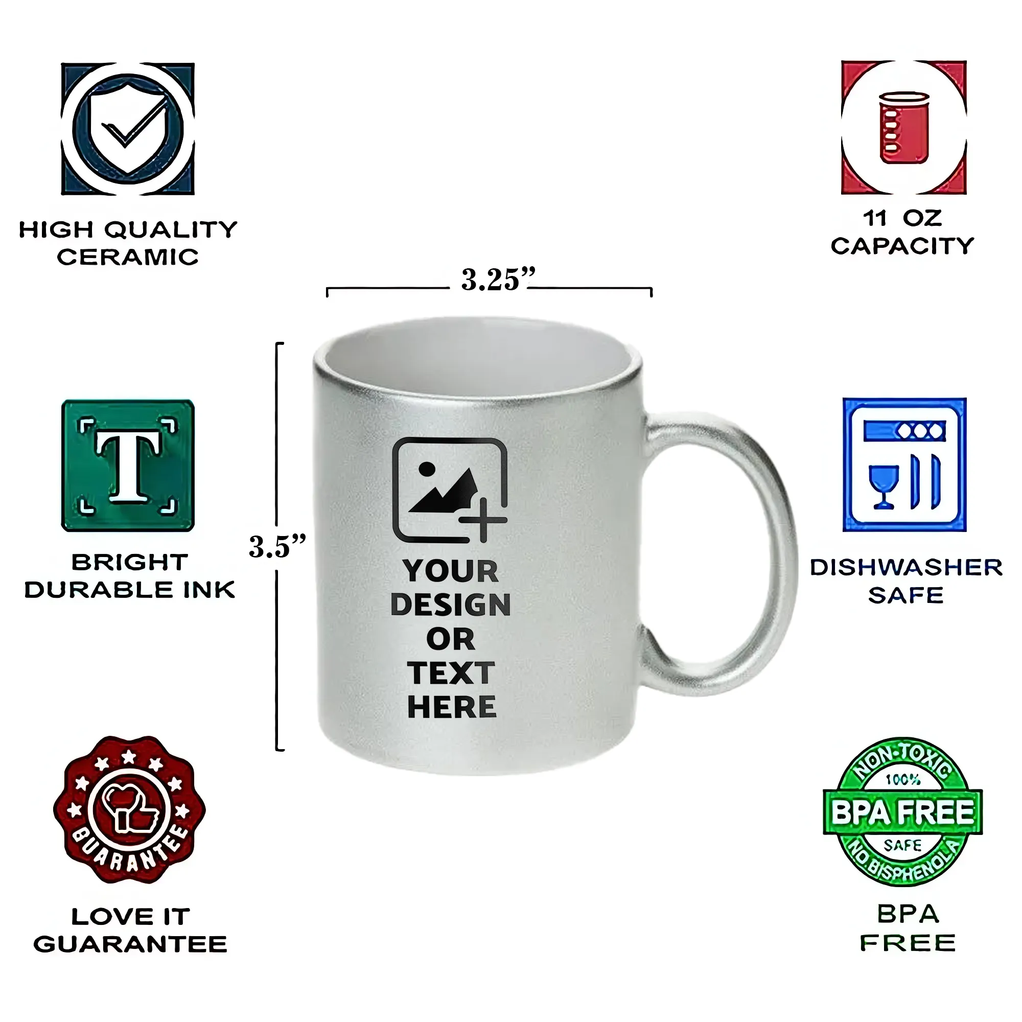 Make every sip special with the elegant Silver Coffee Mug by IGIFTZI — a stunning, personalized mug perfect for adding a stylish touch to any occasion. Crafted from high-quality ceramic with a dazzling metallic silver finish and White color inside, this 11 OZ (325 ml) mug is ideal for birthdays, anniversaries, weddings, and festivals like Valentine’s Day, Friendship Day, Mother’s Day, Father’s Day, and more.