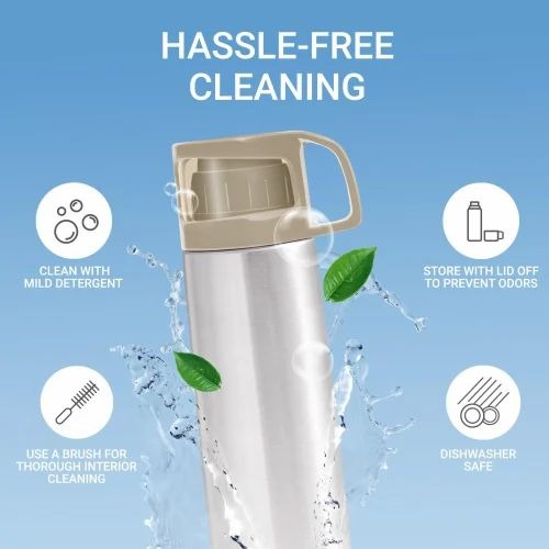 This bottle features a spill-proof stainless steel cap that conveniently converts into a cup, adding ease to your drinking experience. With a capacity of 500ml and a lightweight 300g design, it’s easy to carry and fits perfectly in backpacks, car holders, or office desks.